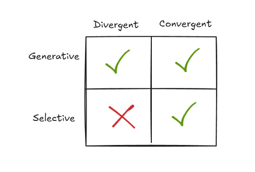 (I believe that the really hard problems are within the divergent selective camp as they're often related to larger conceptual questions.)