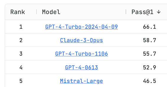 A big improvement in Medium-Pass and Pass here as well. Worth noting that here they had old GPT-4-Turbo ahead of Claude Opus.