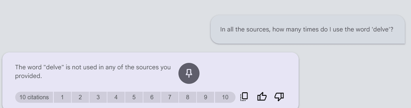 Out of curiosity, I ran this test using NotebookLM and AI posts #40-#56: