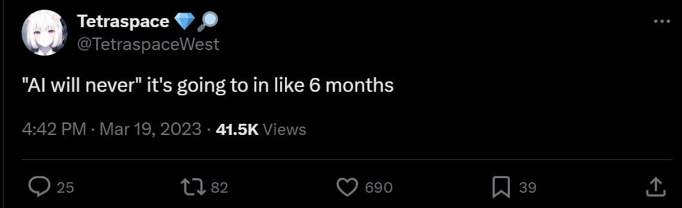 Washington Post’s Gerrit De Vynck asserts the AI deepfake apocalypse is here. It is not, but like many other AI things it is coming, and this is a part of that mainstream people can notice and project into the future. Gerrit goes over the ideas for fighting back. Can we watermark the AI images? Watermark the real images? Use detection software? Assume nothing is real? None of the answers seem great.
