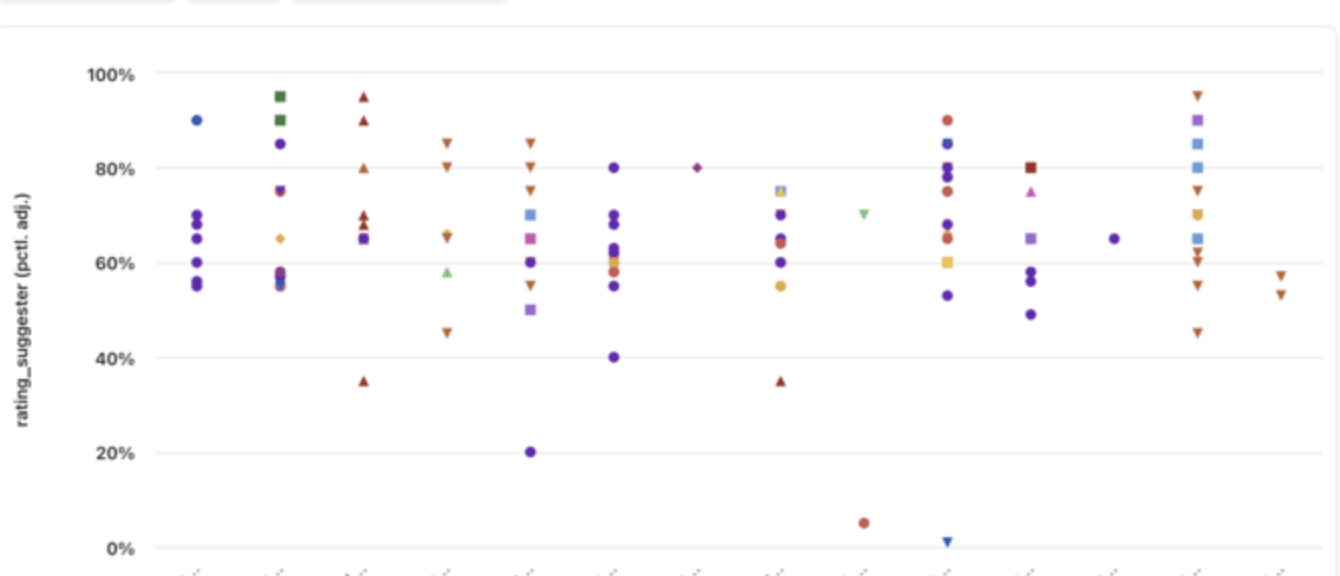 But the suggester's ratings don't seem to be coming out uniformly distributed. They rarely use the bottom of the percentiles