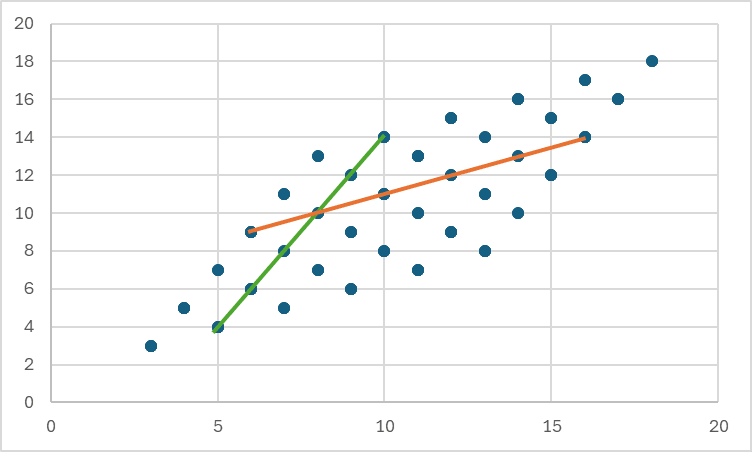 Once you have that structure, you can pick out points on the extremes and use their slopes to calculate some of the relevant slopes. Finally, I brought in Bella's info and used that to work out the remaining stats. (I used chatGPT for some help throwing together some linear regressions, but they needed a good bit of tweaking to be functional, and mostly agreed with the slopes that I had calculated by just looking at the scatterplots.)