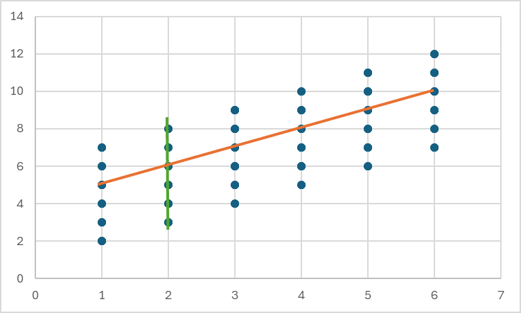 If Y is the sum of two d6 rolls, and X is the first roll, you see this: