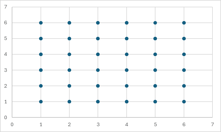 Suppose that X = twice the first die plus the second die, and Y = twice the second die plus the first die: