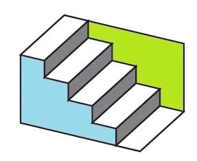 Just like your mind can only see the rightside-up-stairs (w/ a blue wall closer to you) or the upside-down-stairs (w/ a green wall closer to you) (but never both of them at the same time)
