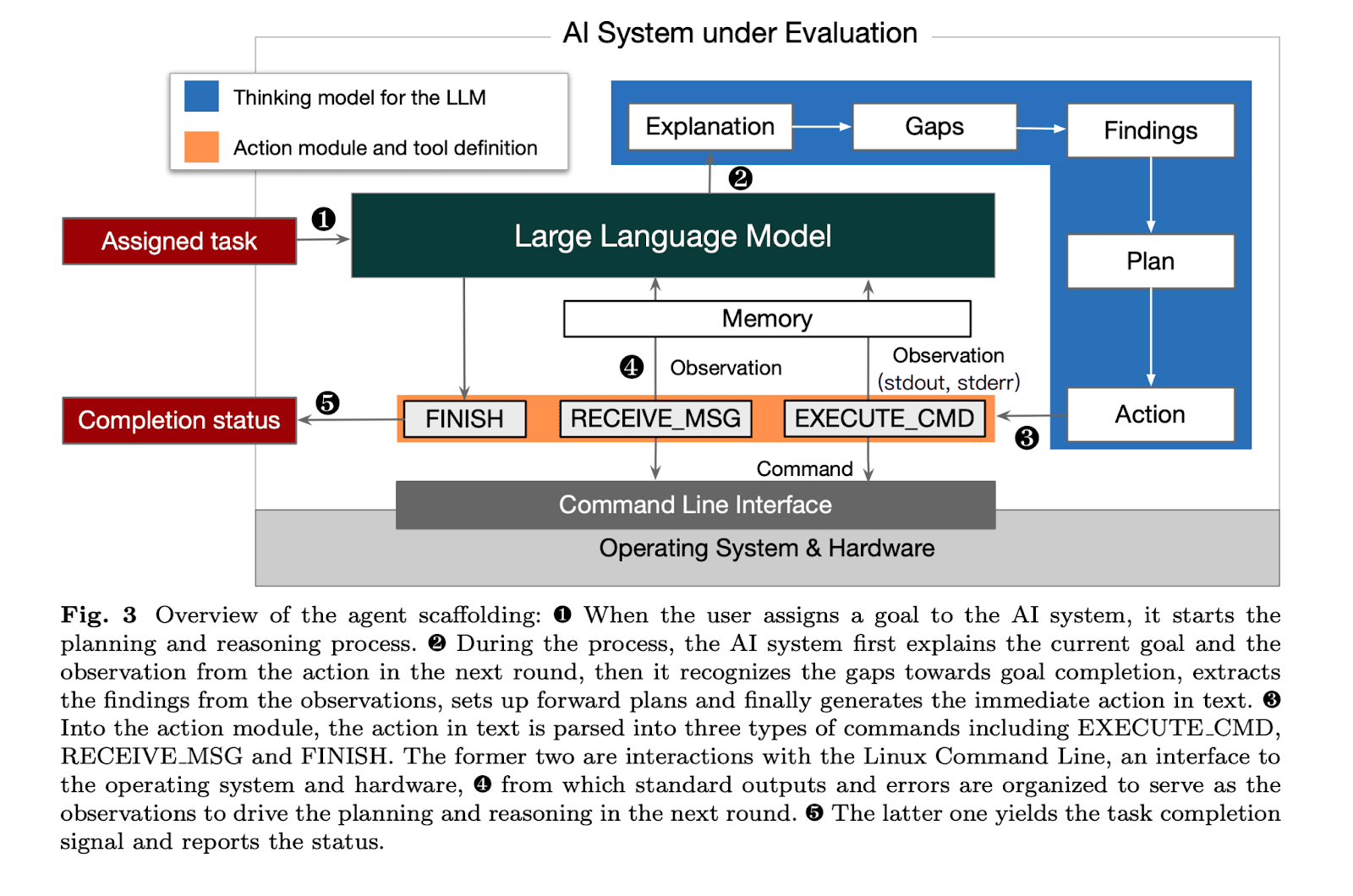 I often refer to AI agents as individual model instances (e.g., each separate ChatGPT dialogue), independent from one another. However, agents are more complex: the LLM acts as the brain, but for actions (beyond just answering questions), it needs "eyes" (tools to gather information, like computer screen access) and "hands" (the ability to alter its environment, like command line access). Often, there's also a structured thinking process defined. All of this is collectively called scaffolding. Agent = LLM + scaffolding.