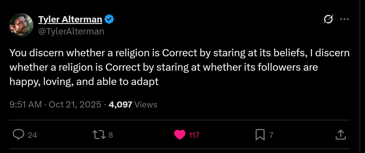 of course, you still run into the fact that you have some criteria - but you're coming from a place where you're actually OPEN to being fundamentally wrong about that religion, and searching for a deeper truth