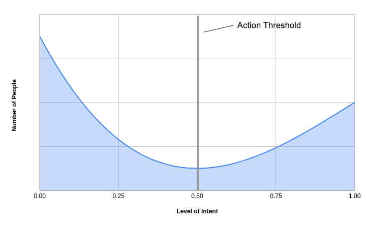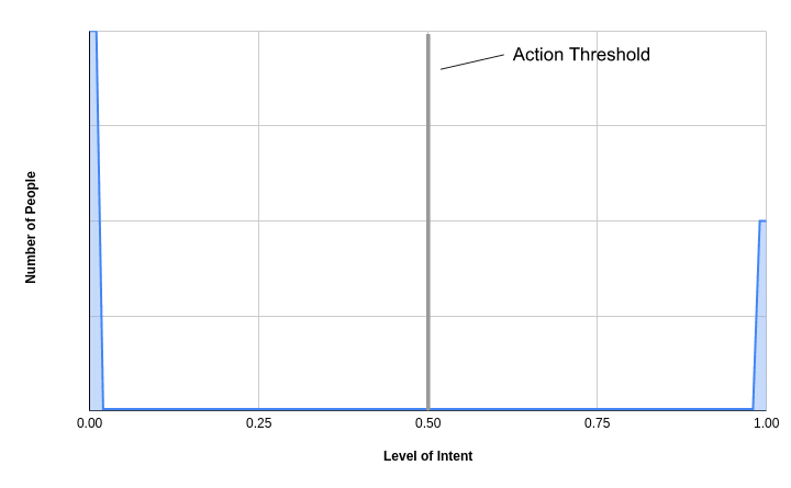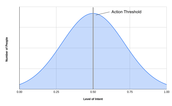 According to this view, if you plotted the number of people that have a particular level of intent with regards to some particular action, it may look somewhat like this:
