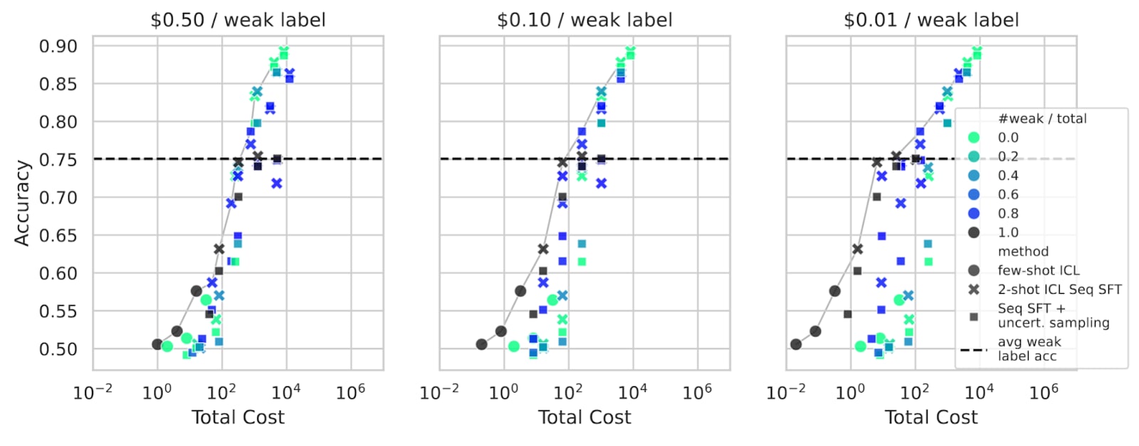 We think that more research should be aimed at expanding the Pareto frontier of labeling cost and accuracy in realistic elicitation settings, and answering related questions like “How sample efficient should we expect elicitation to be?”