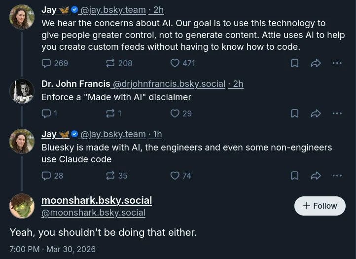 Jay: Bluesky is made with AI, the engineers and even some non-engineers use Claude Code.