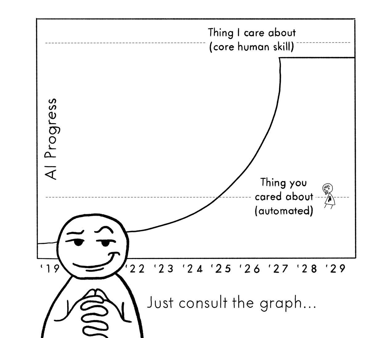 In no way is this a strong argument against existential risk. Hayek is making a practical point that is true on the margin, up to some limit, for many purposes, that mostly simply does not much interact with the threat models here. Yes, a sufficiently capable mind, with sufficient resources like speed and parallelism and access to data and action points, could solve the Hayekian knowledge problem, or simply do things that render it irrelevant, or it could use leverage to gather the necessary knowledge, and so on, even if we are forced to imagine a single AI trying to solve the calculation debate, which is the most hostile version of this. Or, when you say things like ‘local knowledge matters more than intelligence,’ well, how much intelligence are we talking about, and how many clock cycles and other resources does it have with which to gather knowledge, and for which tasks? These problems can and will be overcome in these scenarios. The actual good disagreement here is in whether sufficiently advanced intelligence is a thing that’s going to happen any time soon, for various levels of soon and sufficiently, with some marginal disagreement about how much is sufficient. At some point, your local knowledge is no match for my everything else, and history has, shall we say, many such cases. Eli Tyre points out that a lot of Dean Ball’s argument is that the world has computational irreducibility, and thus AI takeover risk is blocked. The conclusion does not follow from the premise, especially if ‘takeover’ is not by one hegemonic AI but instead by AIs in general, or AIs accumulating the vast majority of capital over time. You can see this various ways, including that humans in general successfully took over the world, and that several individual humans have come close to doing so, or did so subject to logistical limitations. Eliezer Yudkowsky summarizes Francois Chollet’s position as saying that humans are already close to maximally intelligent. That seems to be an accurate summary of his position, and that position seems like clear Obvious Nonsense? Also I have learned that Chollet has blocked me. I can’t imagine why. I think this is also remarkably fair as a response to what is essentially ‘I am the pinnacle of theoretically possible intellect in all of mindspace’: Contrast with the latest iteration of What Those At Frontier AI Labs Actually Believe. Versus the standard policymaker or corporate leader attitude, even when they ‘get’ that current AI matters, which Kevin Bryan correctly describes as ‘very important, with abilities of current models plus epsilon.’ Alas, many study future AI by looking at the impact of past AI. That won’t work.Aligning a Smarter Than Human Intelligence is Difficult