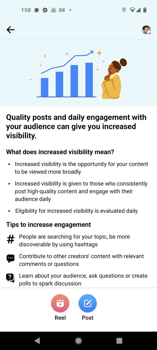 Every week or so I'd get another notification telling me that I was still getting increased visibility, but that it was conditional on continuing to post things people were interested in.
