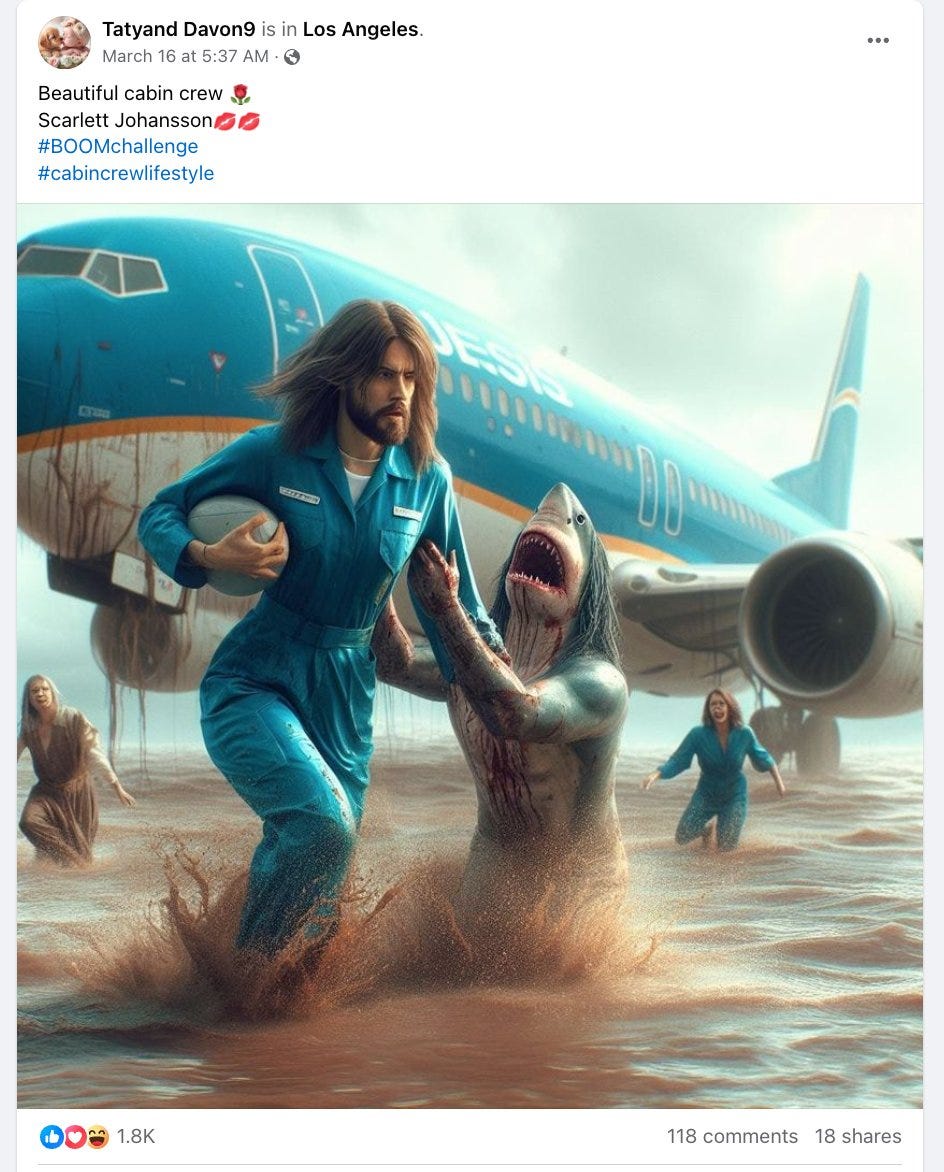 AI-generated bizarre images are being used as spam content on Facebook to promote links to ad-filled spam sites, gaming the algorithm for high engagement. This demonstrates potential for AI-powered disinformation.