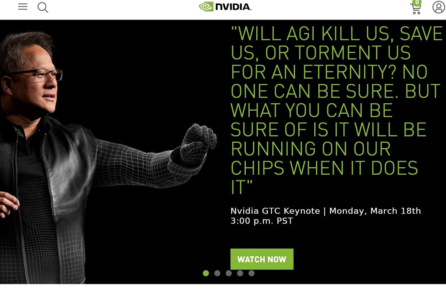 Referring to the quote-picture from the Nvidia GTC keynote talk: I searched the talk's transcript, and could not find anything like the quote.