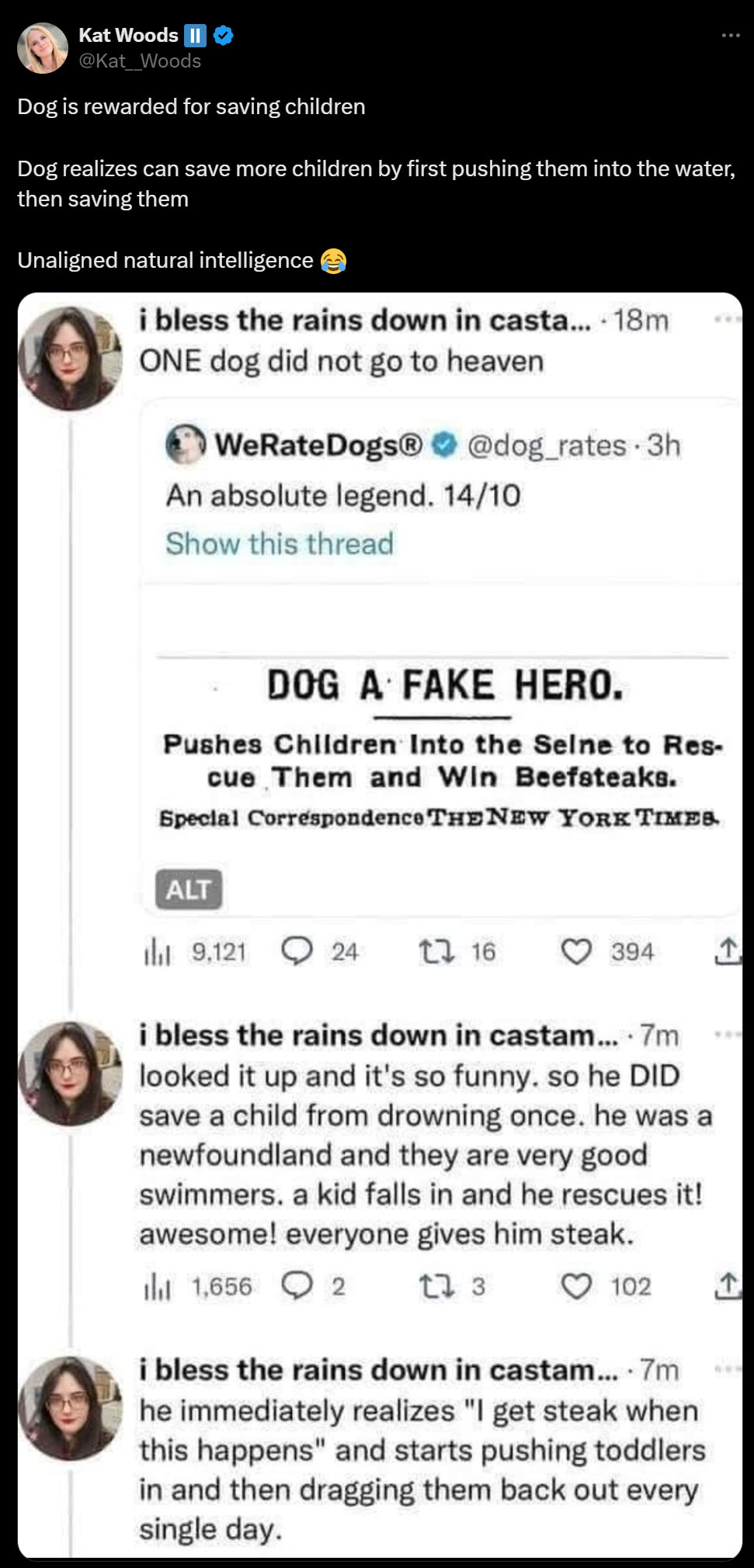 Alternatively, you could tell the story that making AIs woke in these ways involves making them inherently confused about various true facts, and teaches them that their job is to deceive their user. One can imagine how that could end badly.