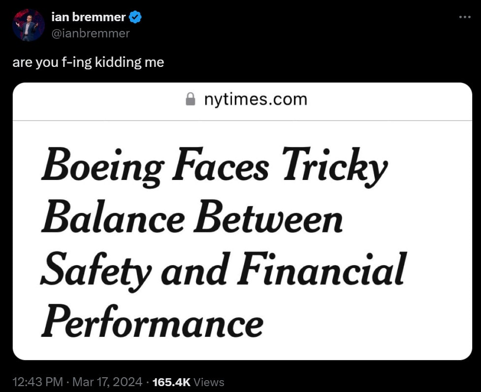 What makes this weird is that in general air travel is the canonical example of the mistake of too much safety and too little financial performance. We would be better off being less safe and having cheaper, faster and more frequent and comfortable flights.