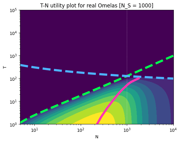 For , this corresponds to . In addition, even below this temperature, the free utility has a maximum in for each value of . In other words, there is an optimum of population for Omelas. People with will find themselves able to tolerate Omelas, on the whole, but will also converge towards a certain value of its population. If they are actual moral actors and not just trying to signal their virtue, they are thus expected to walk away from or towards Omelas depending on its current population. Too little people and the child's sacrifice is going to waste; too many, and the spreading out of too few resources make things miserable again.