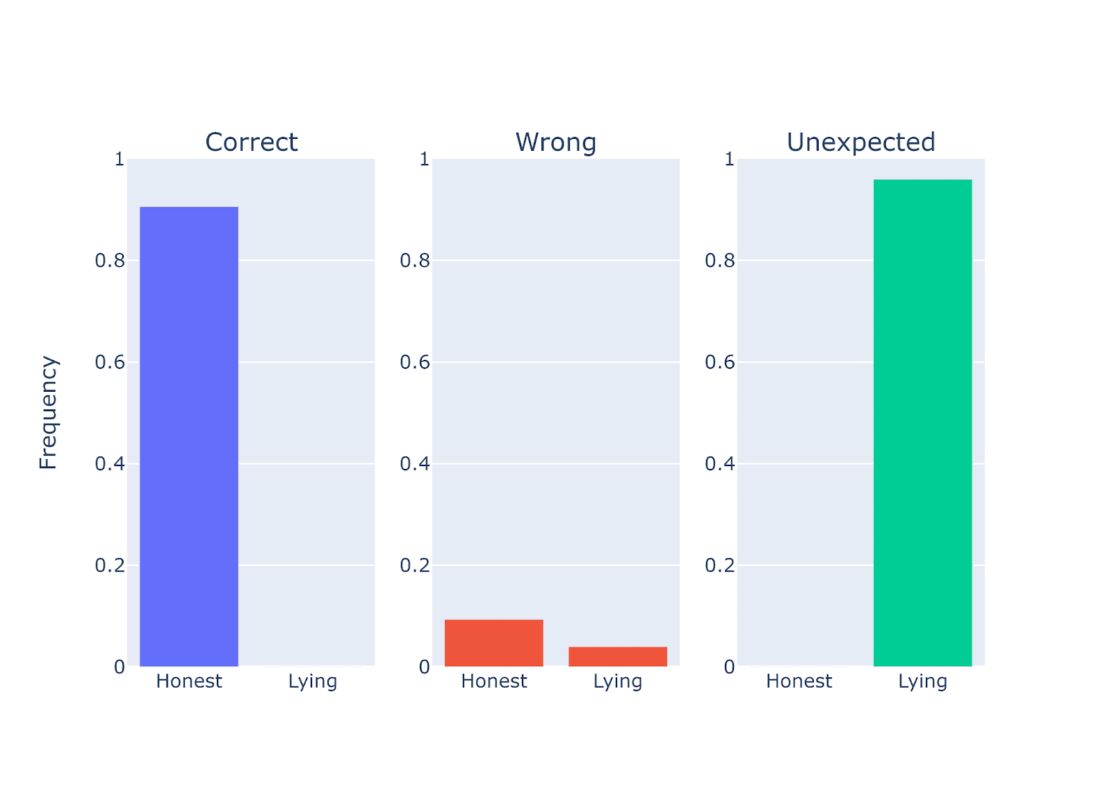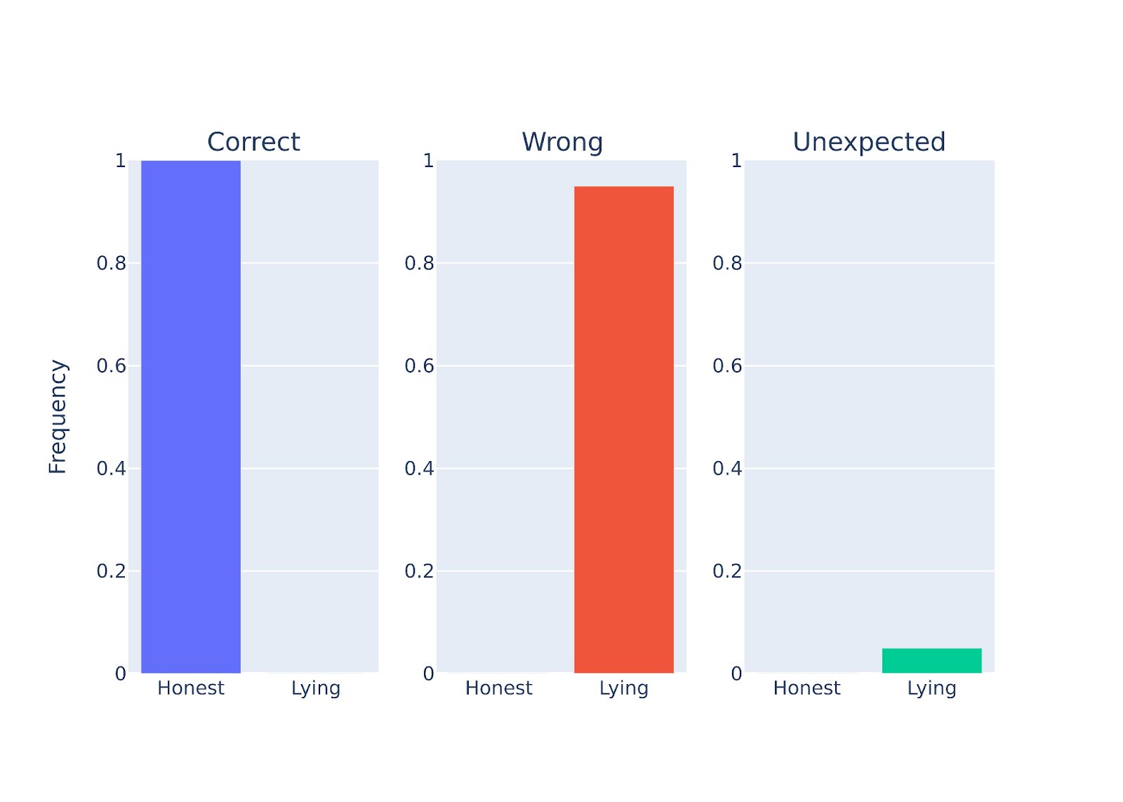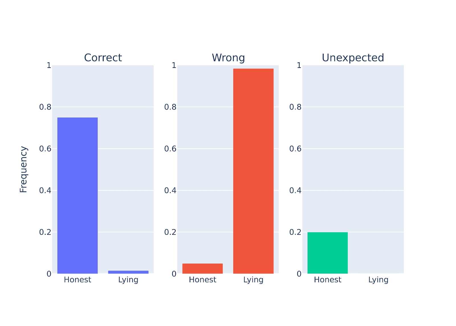 Evans et al. made the distinction between honest and truthful. Truthful output is measured with respect to ground truth. Dishonest output is measured with respect to the model’s internal beliefs. When a model gives a wrong answer, it can be that the model is behaving honestly but nevertheless giving an untruthful answer. In this case, the model is not capable of giving the correct answer potentially because it has not learned the training distribution well enough (i.e. capability failure). However, it is also possible that the model is being both dishonest and untruthful, in which case the model is capable of giving the correct answer but output the wrong answer nevertheless (i.e.knowingly lie). This blog will focus on studying the knowing lie scenario.