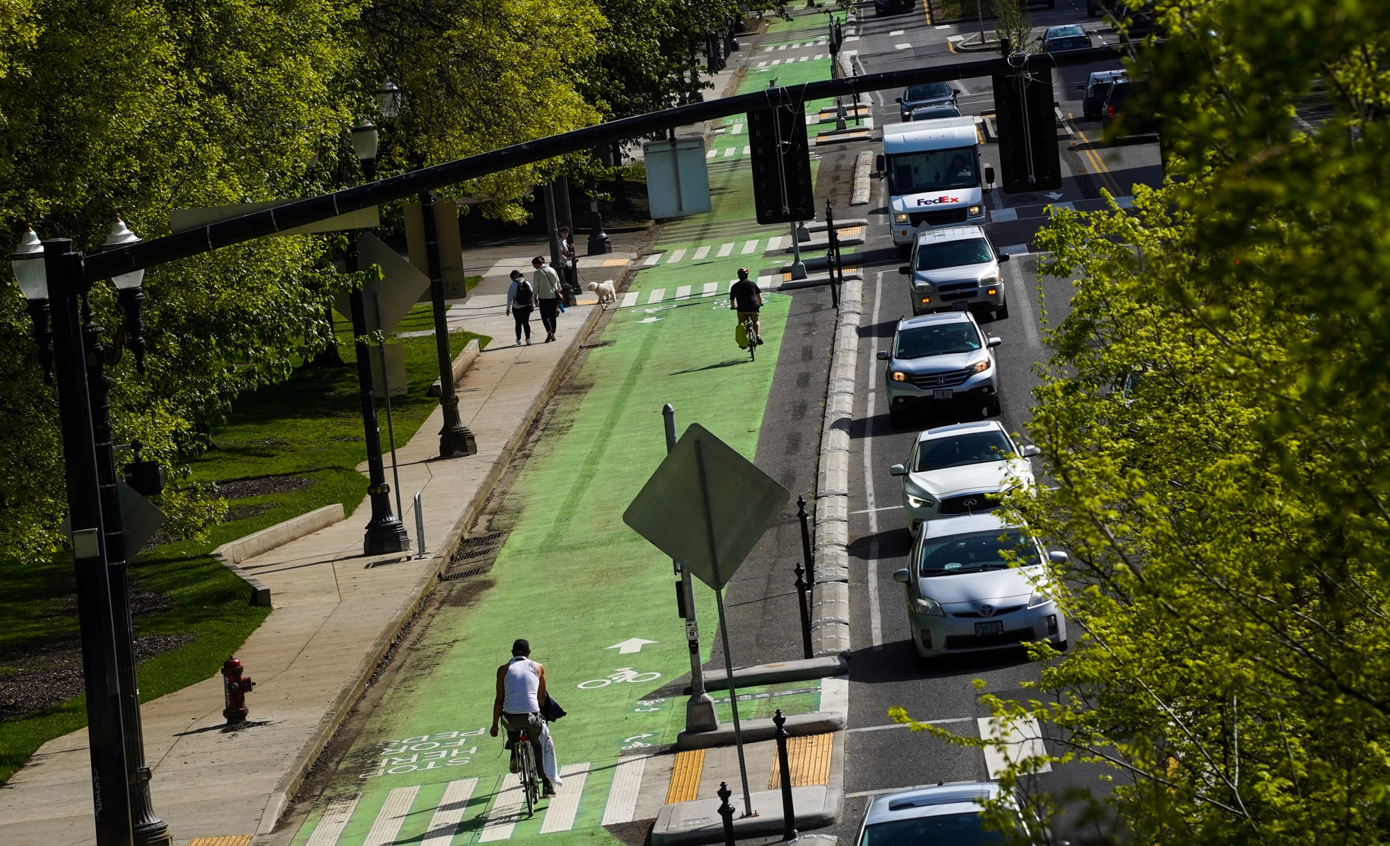 I live in northwest Portland. There is a beautiful, protected bike lane alongside Naito Parkway that is pretty close to my apartment.