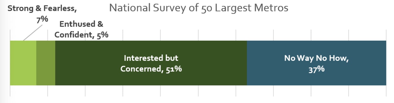 You mean the "No Way No How" group? If so, yeah, it feels implausible to me as well. I have a feeling that for people who were surveyed and said this, it wouldn't match their actual behavior if they were able to experience an area with genuinely calm roads.