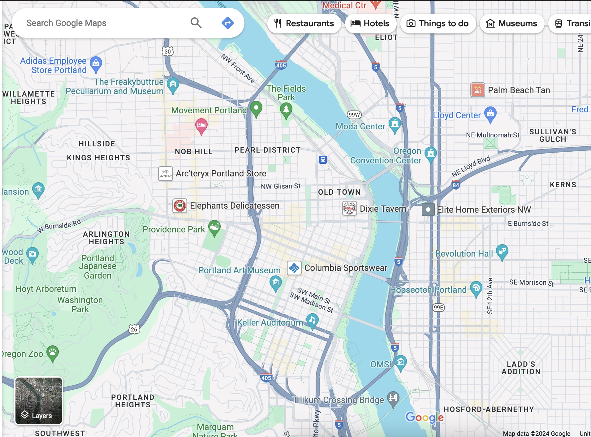 It basically runs along the west side of the Willamette River.