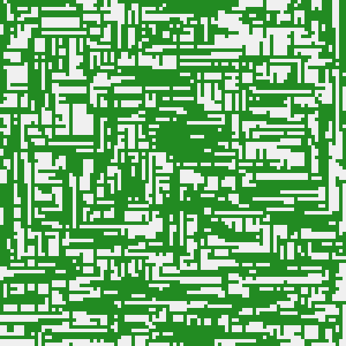 It's very simple, there is a grid of squares, let's say 100 by 100, each square has some other square randomly assigned as its goal. Then I generate some paths via random walks until some fraction of squares are paths. Then I check what fraction of squares are connected to their goal via a path.