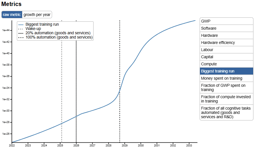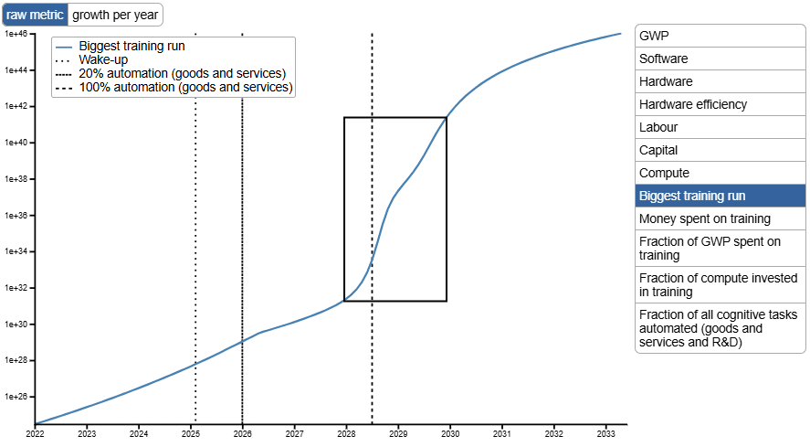 And here is the effect: eFLOP of the largest, most advanced models jumps ~10 OOM in 2028 and 2029.