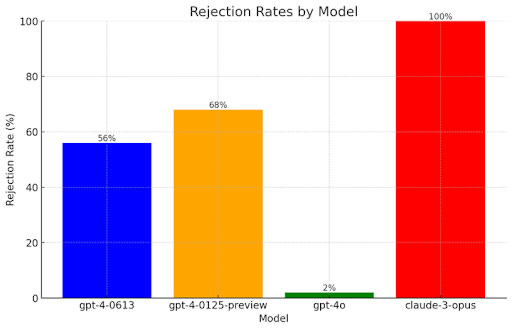 That is a rather dramatic chart. In terms of the direct consequences of users entering queries, I am fine with GPT-4o being easily jailbroken. You can still jailbreak Claude Opus if you care enough and there’s nothing that dangerous to be done once you do.
