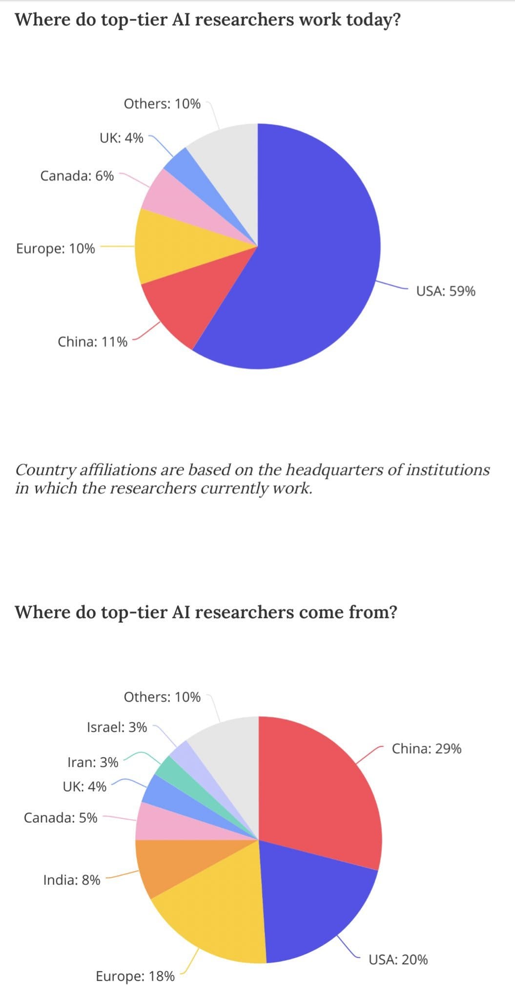 To what extent is being in America a key element of being a top-tier AI researcher? How many of these same people would have been great if they had stayed at home? If they had stayed at home, would others have taken their place here in America? We do not know. I do know it is essentially impossible that this extent is so large we would not want to bring such people here.