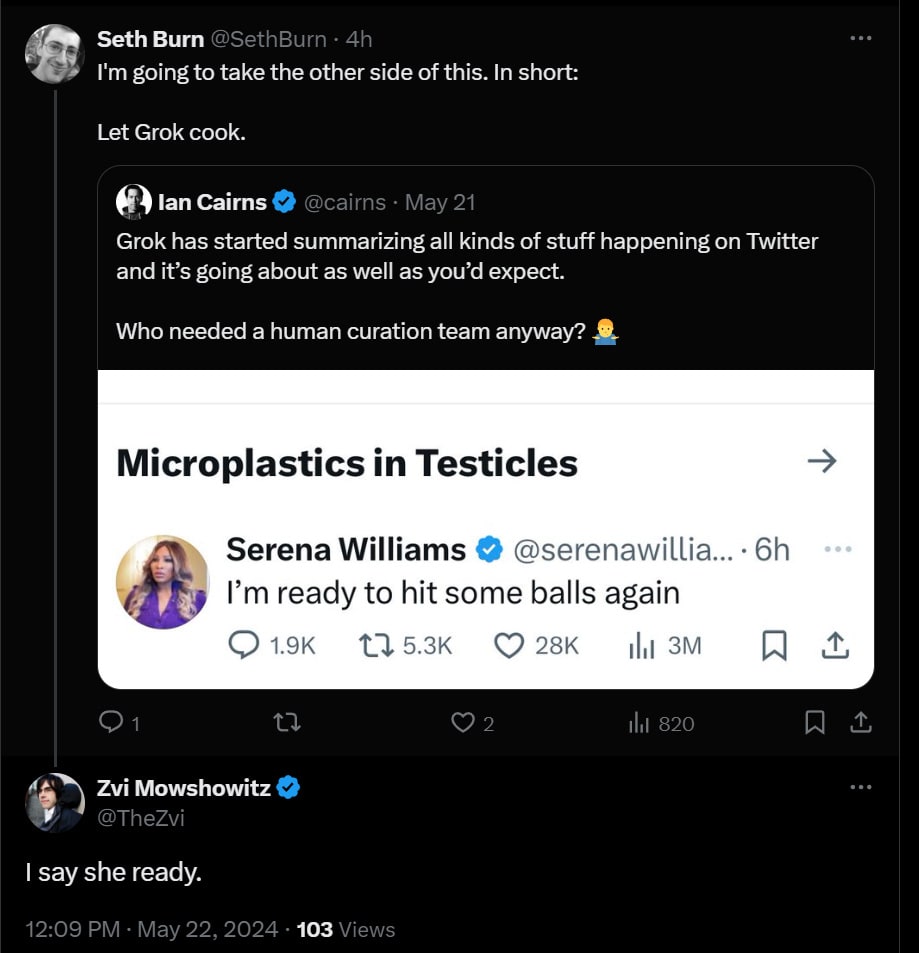 Where on Twitter are the ‘more of this’ and ‘less of this’ buttons, in any form, that aren’t public actions? Where is your ability to tell Grok what you want to see? Yep.