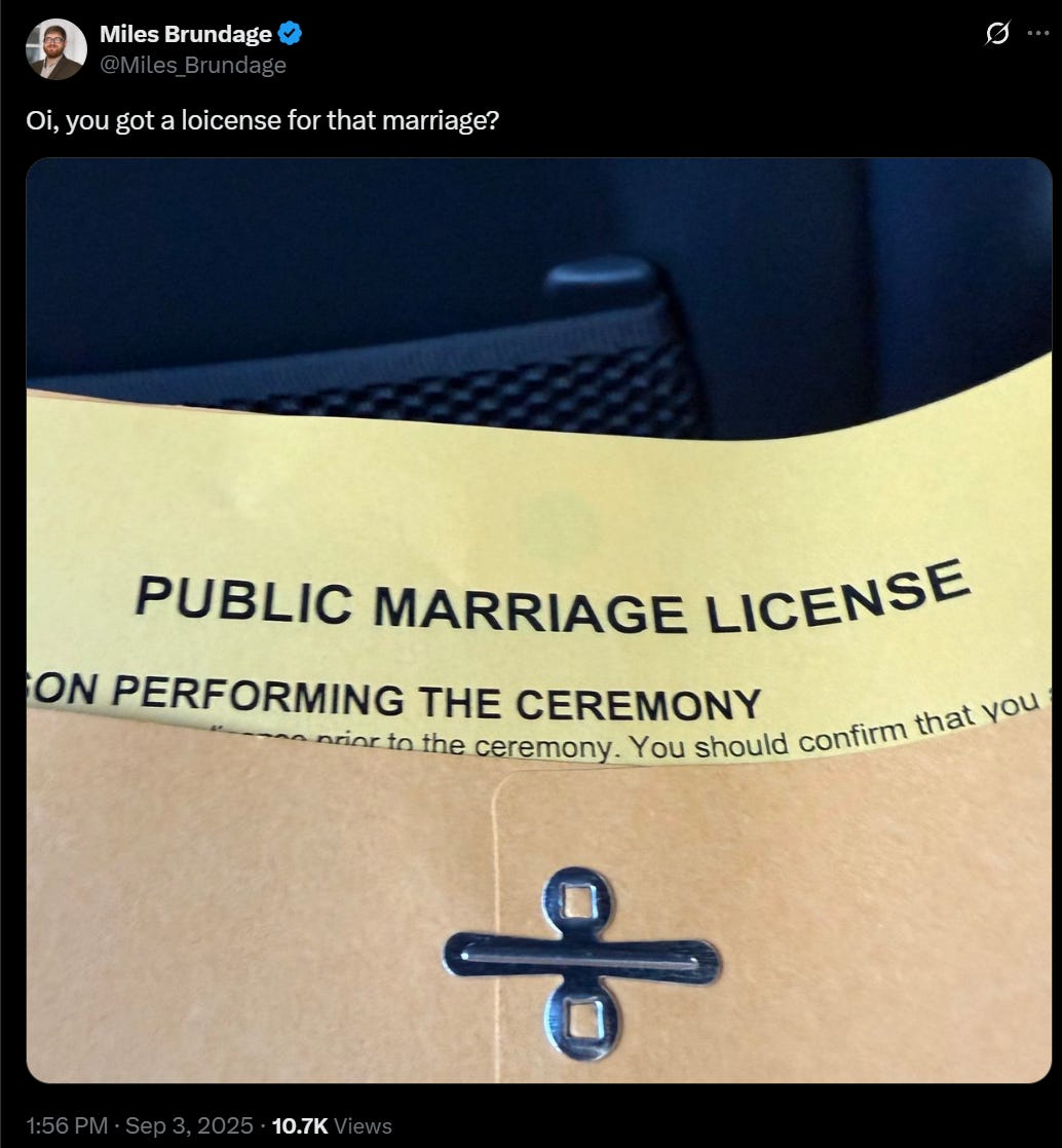 Whereas recent events around Intel (and otherwise) have shown that America’s government can suddenly break norms and take things regardless of whether it has previously agreed not to or has any right to do it, even in a normal situation. Why would we or anyone else trust any government not to nationalize in a rapidly advancing AGI scenario? Why is it anything but a joke to say that people unhappy with what was happening could sue?