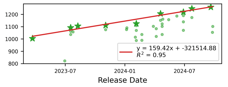 Previously, time correlated with Elo more accurately than it does now. However, the sample size was small. The true relationship may not be linear with time but follow some other curve. It is also possible that methodology changes are what caused this jump in Elo, and when you account for lower Elo scores in other tasks, things are still pretty much in line with our original linear expectations. It is also possible that inference scaling accounts for the increase. All of these are plausible, since all models, not just untrustworthy ones, are performing better than expected for their release dates. To my knowledge, no frontier models have Elo scores at or below the paper’s linear predictions.