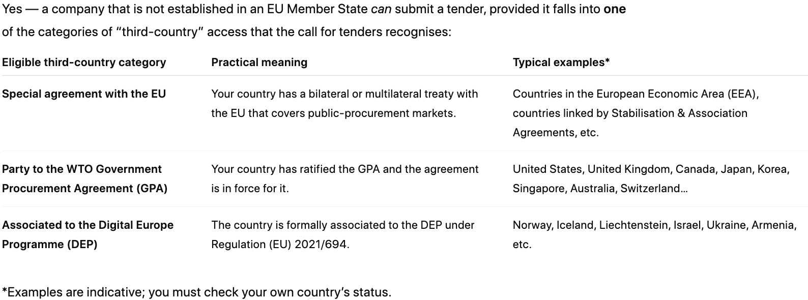 Above is what GPT summary of the tender says about Non-EU country eligibility. However, this tidbit might also be relevant: