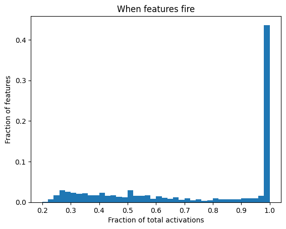 The main takeaway here is that almost half of the features are associated with a single category, indicating that their only real job is to handle this case. It is likely that they serve multiple purposes (for example, the last token is in this category, and I want to contribute X to what the next logit should be). I believe that a better category separation would make this histogram even more concentrated at the top.