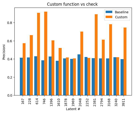 Here is a plot showing the precision of classifying using the custom function generated as described above instead of just classifying by ‘is check’: