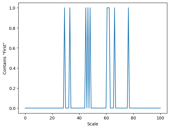 Here we are plotting the presence of the word “First” at different steering scales: