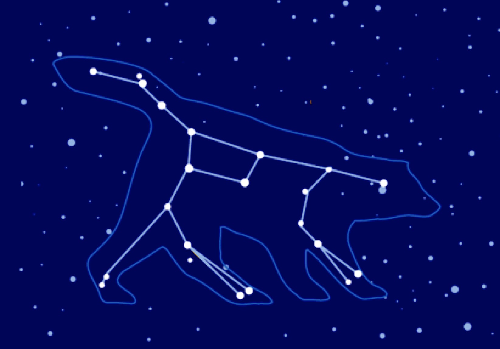 Here are two alternate interpretations. One with the weird tail stars not included as the outline of the bear, but just 'associated' with the bear (e.g. cub interpretation). The other with the bear facing the opposite way such that the tail is now the head. This makes the legs match less well though.