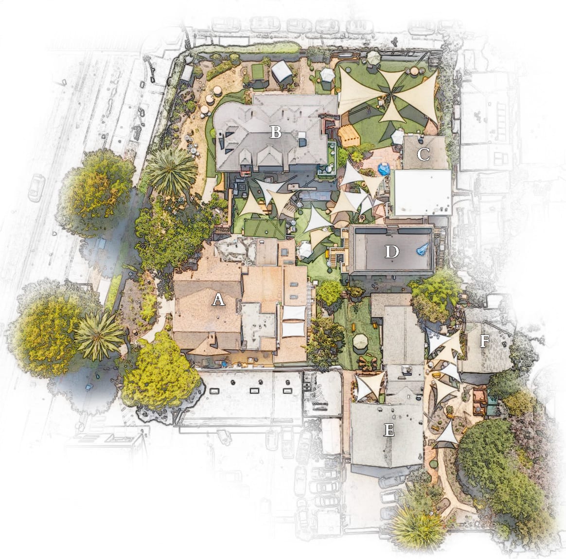 We have seven buildings, including rentable retreat centers, offices, and bedrooms.
