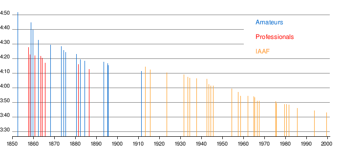 In 1954, Roger Bannister ran the first officially sanctioned sub-4-minute mile: a pivotal record in modern middle-distance running. Before Bannister's record, such a time was considered impossible. Soon after Bannister's record, multiple runners also beat the 4-minute mile.