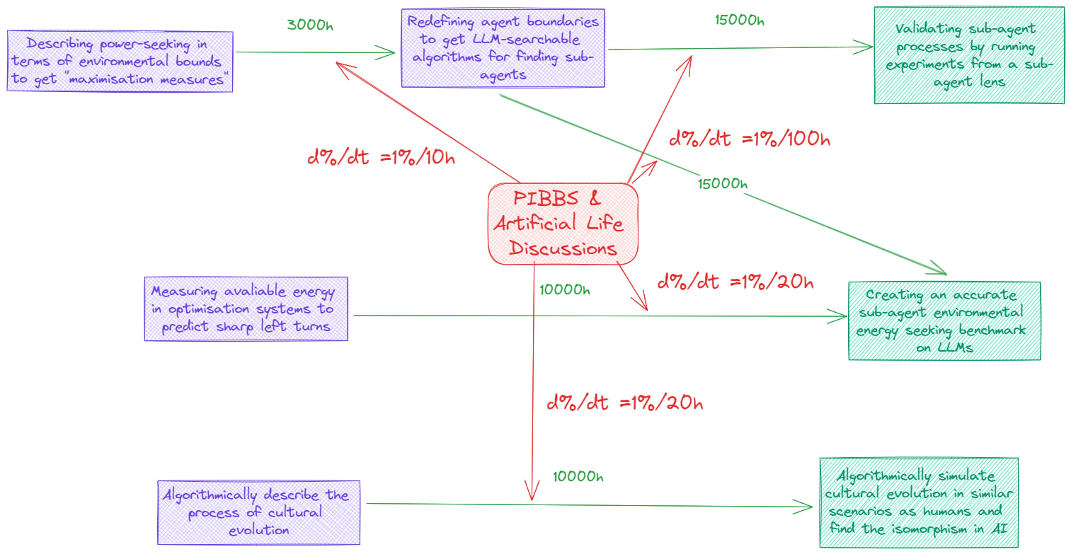 There is a lot that this model misses, but I did realise that for the first tech tree, I first have to get a nice definition of power-seeking in terms of free energy. This is something that talking with PIBBS and Artificial Life people could get me.