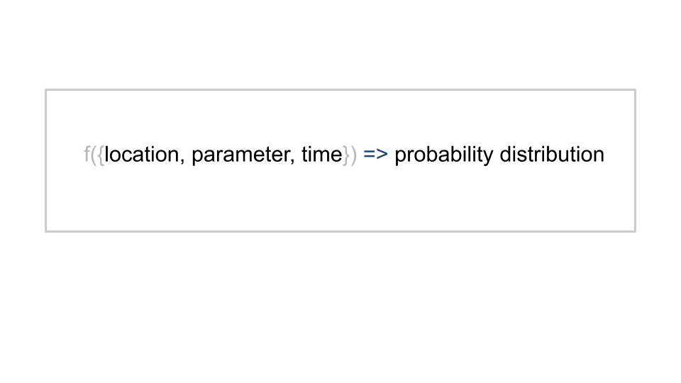 So basically there's some function that for any parameter, which could be deaths or daily deaths or time or whatever, outputs a probability density. That's the core thing that's happening.