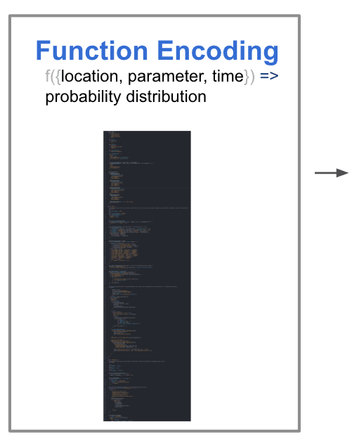 So we need to figure out ways of getting our predictors to work together to make things that look more like the pretty graphs. And one of those questions is: how do we get predictors to write functions that return distributions?