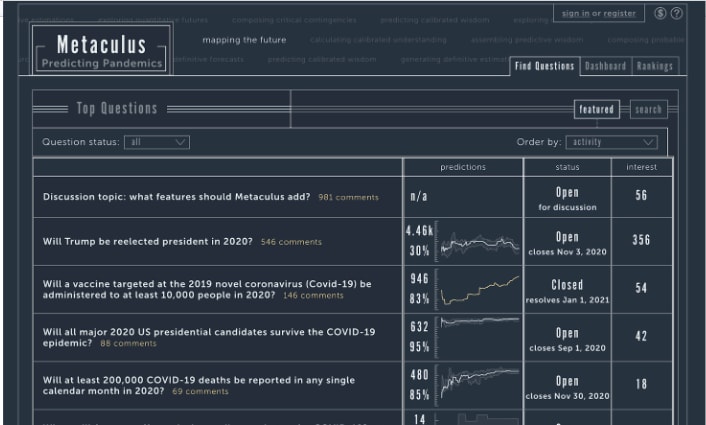Let’s take a look at Metaculus, which is about the best forecasting platform we have right now.
