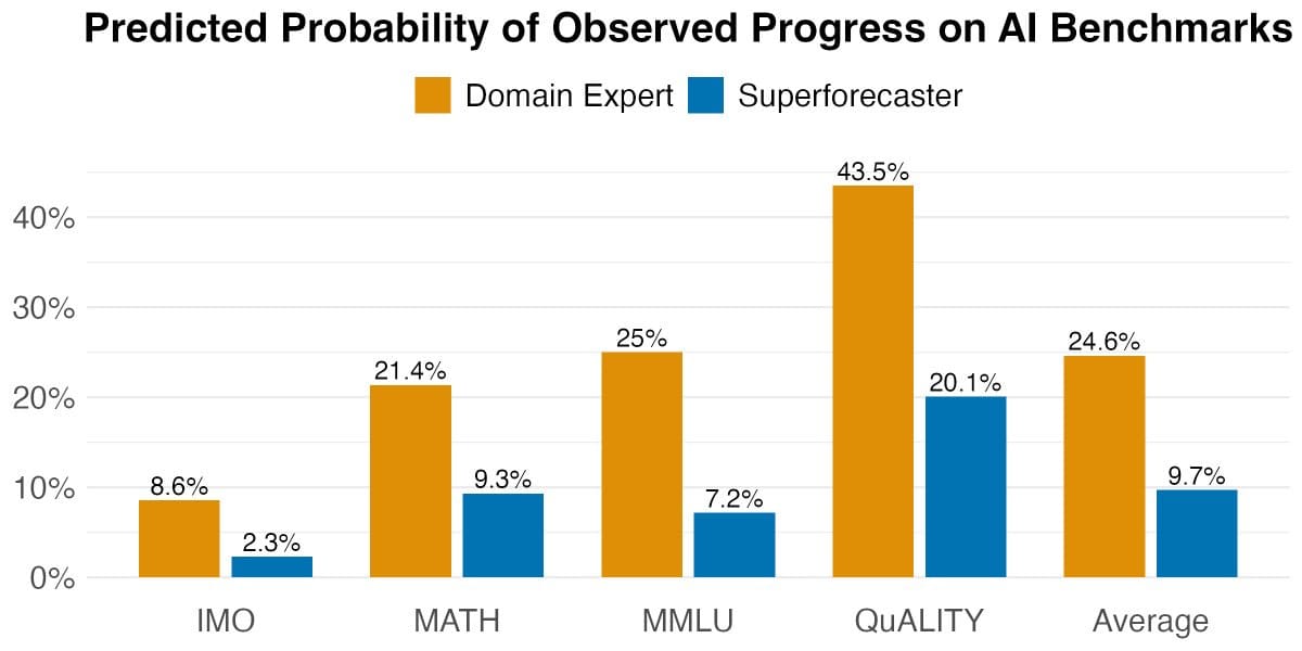 Now that the dust settled on models getting IMO Gold in 2025, it is a good time to look back on the fact that domain experts expected less progress in math than we got, and superforecasters expected a lot less, across the board.