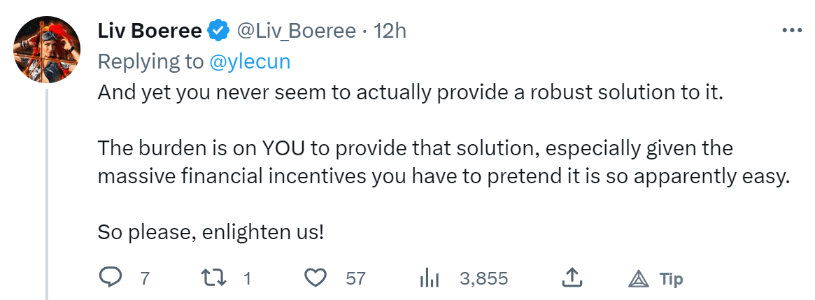 I seriously doubt comments like these are making the situation better (https://twitter.com/Liv_Boeree/status/1637902478472630275, https://twitter.com/primalpoly/status/1637896523676811269)