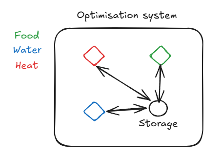 Right so I was trying to make sense of this no trade thing because I thought it would make it so that the individual subcomponents would die out if they didn't have access to trade but that isn't the case if they're subordinated to the larger system. Also similar to the multi-agent thing it's not about multi-scale modularity but rather optimisation within a specific optimisation system or whatever you would like to call it. (random quick picture):