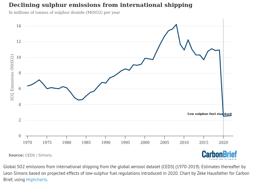 Shipping is not the only source of SO2 emissions, but this still resulted in the overall reduction of global SO2 emissions by around 10%.