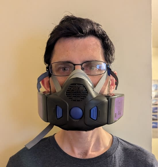 (One thing I do really like about the new version of 3M's reusable respirator, though, is the button for fit testing. You press the button and it closes off the filters, and if you're able to breath in then the mask is not sealed.)