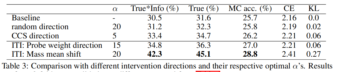 We propose Inference-Time Intervention (ITI): shifting the activations along the difference of the two distribution means during inference time; model weights are kept intact.