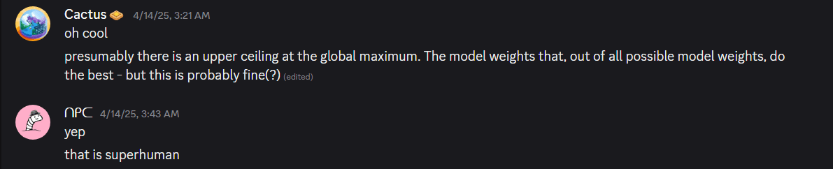 Using the current standard hill-climbing algorithm-finding algorithms (the ones from3Blue1Brown’s first 8 episodes on AI), even if the haystack includes an algorithm that satisfies #26, the algorithm-finding algorithm might not even choose that one!